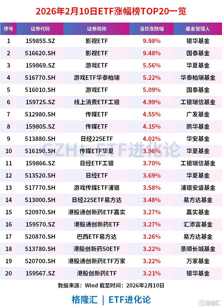AI再一次展现(xian)不容置疑的壮大临盆能力,今日(ri)A股AI运用主题ETF直接霸屏涨幅榜 ,银华影(ying)视(shi)ETF涨停,国泰影(ying)视(shi)ETF涨超9%,中原(yuan)游戏ETF、游戏ETF华泰柏瑞涨超5%。