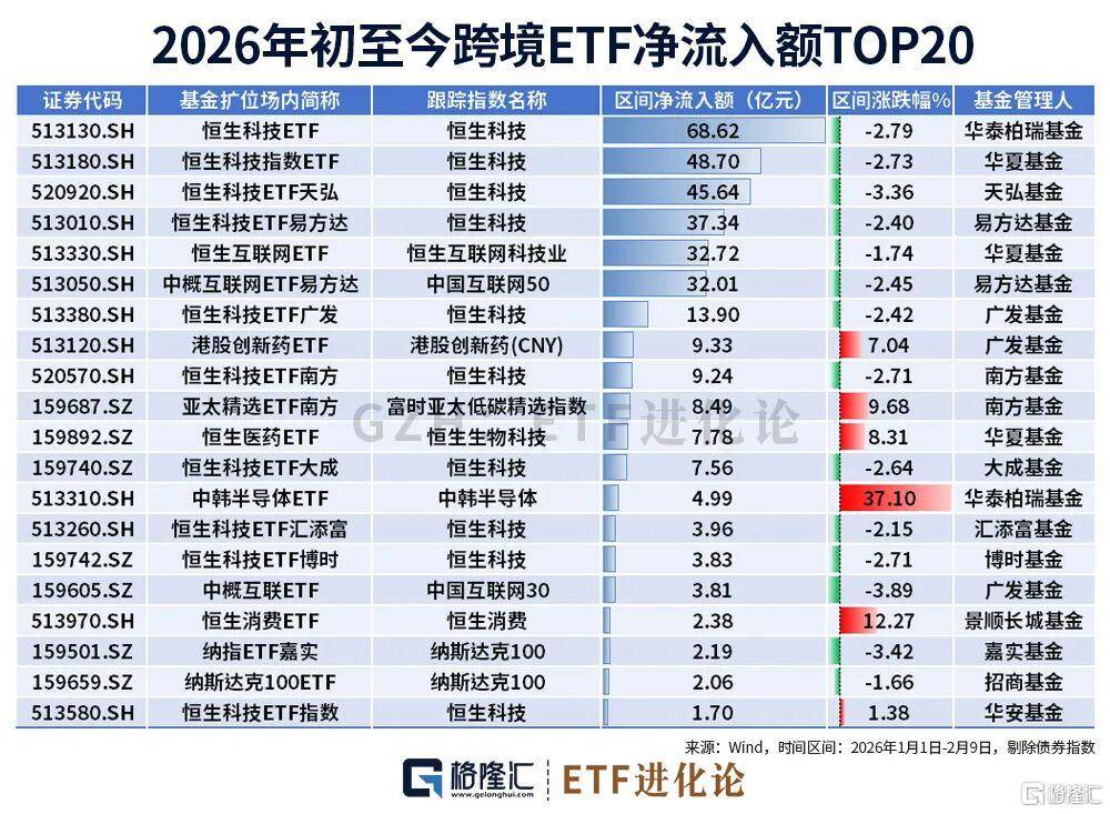 截至2月9日(ri),恒生科技指(zhi)数(shu)成为ETF开(kai)年以来(lai)最受资金喜爱的跨境指(zhi)数(shu),净流入额(e)高达242.59亿元。