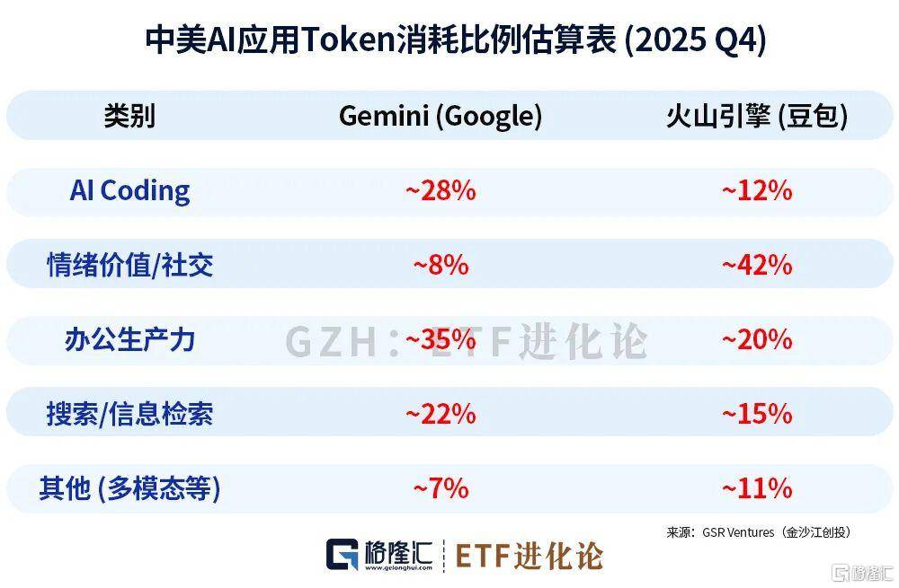 数(shu)据显示,豆包占比最高token范例,近一半消(xiao)耗于感情价值/交际运用,而Gemini占比最高的35%token消(xiao)耗是办公和临盆力。