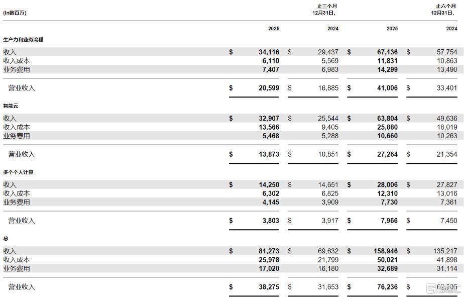 智能云部分营收为329亿(yi)美元(yuan),同比增长29%(按(an)固定汇率计算增长 28%),高于(yu)预期(qi)的323.9亿(yi)美元(yuan)。
