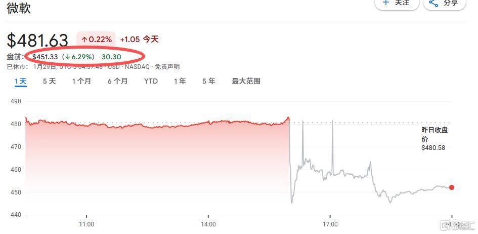 周四,微软股价在(zai)法兰(lan)克福(fu)市场下跌6%,美股盘前也大跌超6%,报(bao)451.33美元(yuan)。