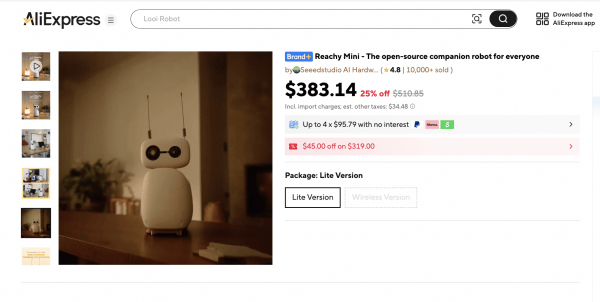 黄仁(ren)勋亲自(zi)“带货”, Reachy Mini马上引发了大量接头。3月16日,这款明星产品正式面向全球大规模现货发售。其官方制作商、我国开源硬(ying)件供给商Seeed Studio宣(xuan)告(gao),Reachy Mini将上岸阿里旗下跨境平台速卖通(AliExpress),作为其官方授权的首发渠道。